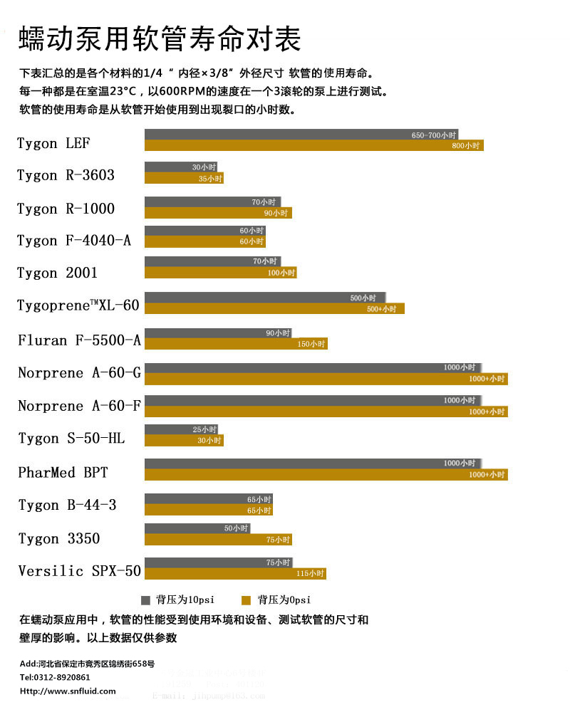 蠕動(dòng)泵用軟管壽命對(duì)表
