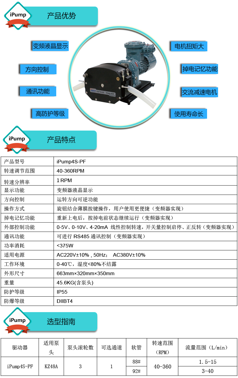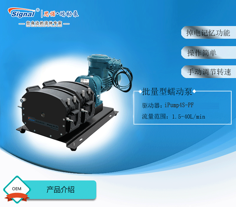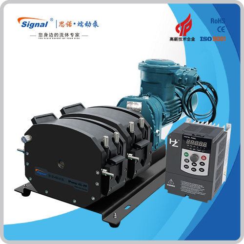 流量范圍:1.5-40L/min 彈性壓管結(jié)構(gòu),軟管壽命長(zhǎng),非常適合大流量液體傳輸 免維護(hù)交流減速電機(jī)驅(qū)動(dòng),變頻器調(diào)節(jié)轉(zhuǎn)速 全金屬泵頭,高精度,更可靠 防爆等級(jí)DIIBT4,適合易燃易爆環(huán)境使用