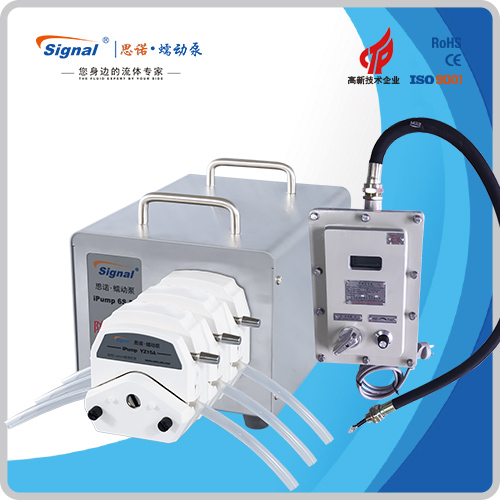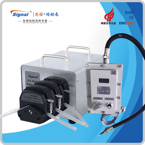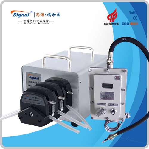 1.流量范圍:3-2416ml/min 2.免維護交流防爆減速電機驅動,變頻器調節轉速 3.電機扭矩大,可級聯雙泵頭 4.防爆等級DIIBT4,適合易燃易爆環境使用 5.304不銹鋼外殼,易擦拭,耐腐蝕,便于攜帶