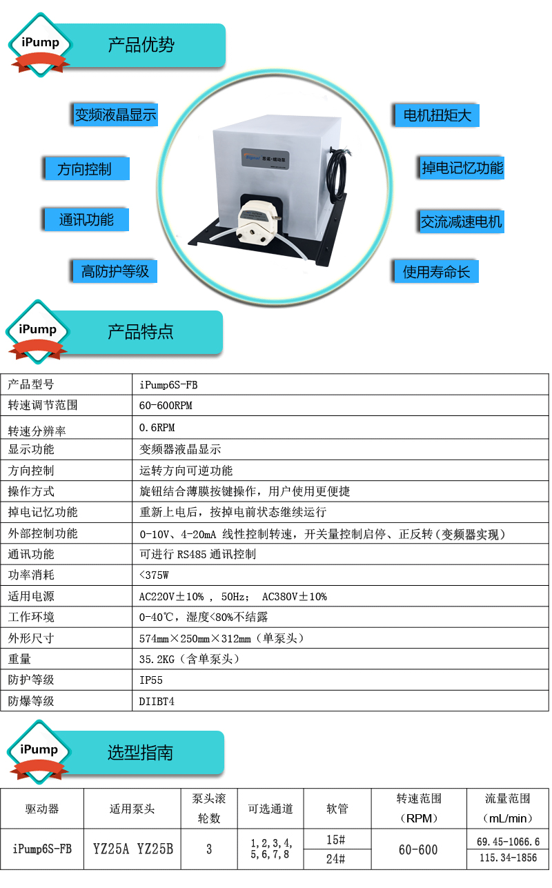 流量范圍:3.12-2416mL/min 免維護(hù)交流防爆減速電機(jī)驅(qū)動,變頻器調(diào)節(jié)轉(zhuǎn)速 電機(jī)扭矩大,可級聯(lián)雙泵頭 防爆等級DIIBT4,適合易燃易爆環(huán)境使用