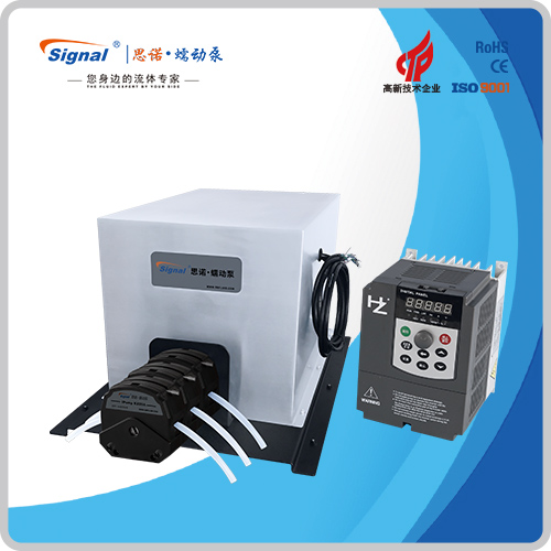 流量范圍:115.0-6061mL/min 免維護(hù)交流防爆減速電機(jī)驅(qū)動(dòng),變頻器調(diào)節(jié)轉(zhuǎn)速 電機(jī)扭矩大,可級(jí)聯(lián)雙泵頭 防爆等級(jí)DIIBT4,適合易燃易爆環(huán)境使用