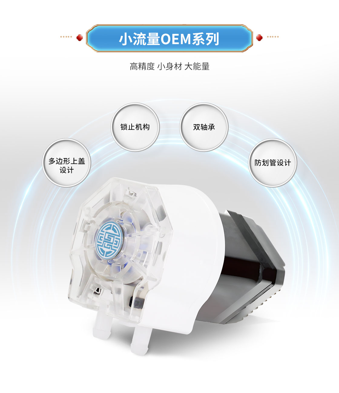 4.泵體防劃管設(shè)計,提高軟管壽命。