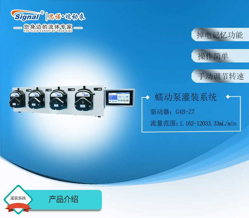 1.此灌裝系統(tǒng)由4通道組成,通道數(shù)量可定制,大可擴(kuò)展至32通道;可安裝YZ25 YZ35 YZ25 YZ15泵頭;