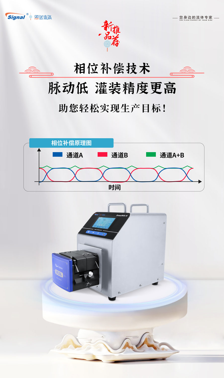 這款蠕動泵采用了相位補償技術設計,有效降低了泵在輸送液體時產生的脈動現象。脈動低意味著液體流動更加平穩,減少了因脈動引起的液體壓力波動和流量不穩定,從而確保了傳輸的高精度。