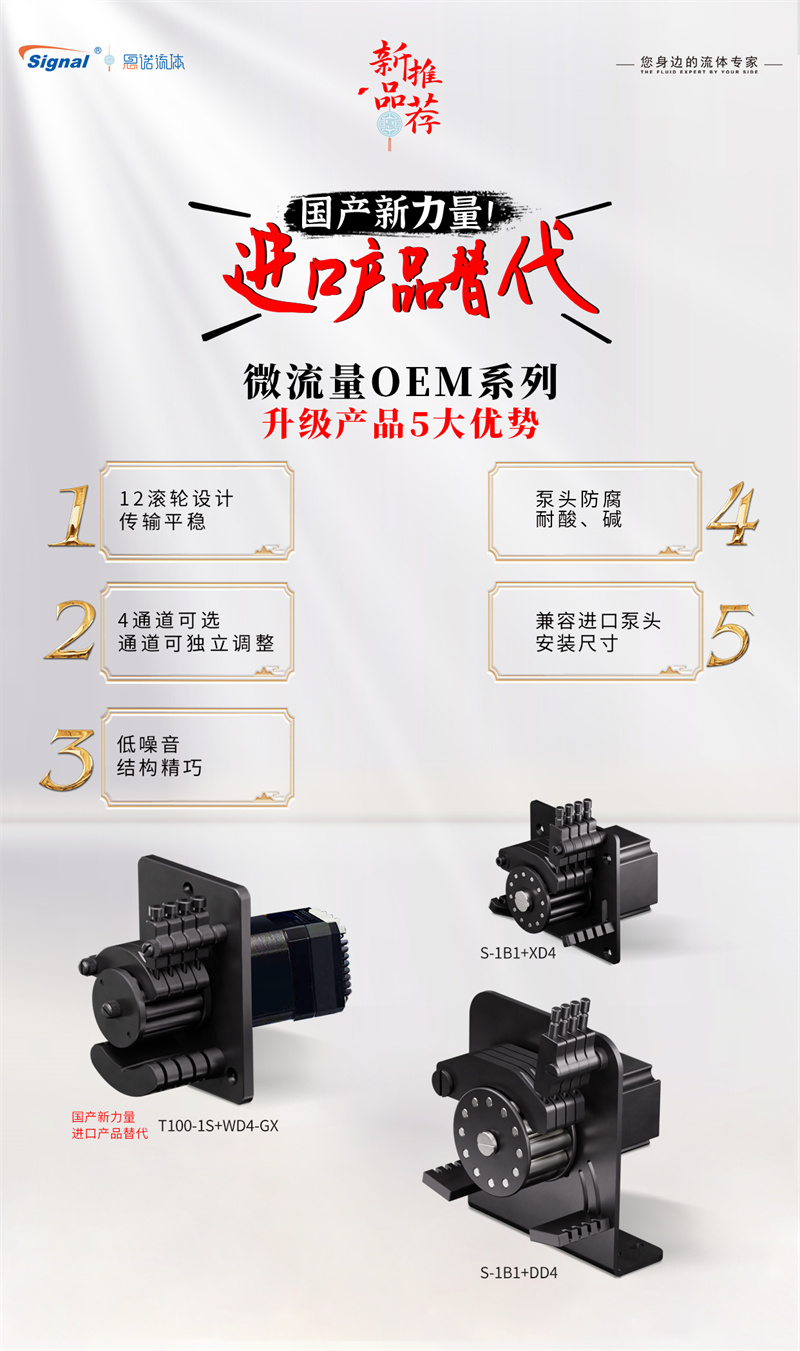 保定思諾隆重推出新微流量OEM系列產品——WD4、XD4、DD4,標志著國產微流量蠕動泵正式以技術創新破局,成為不可忽視的“國產新力量”。本系列產品實現對進口產品的直接替代,為關鍵領域提供自主可控的精密流體解決方案。