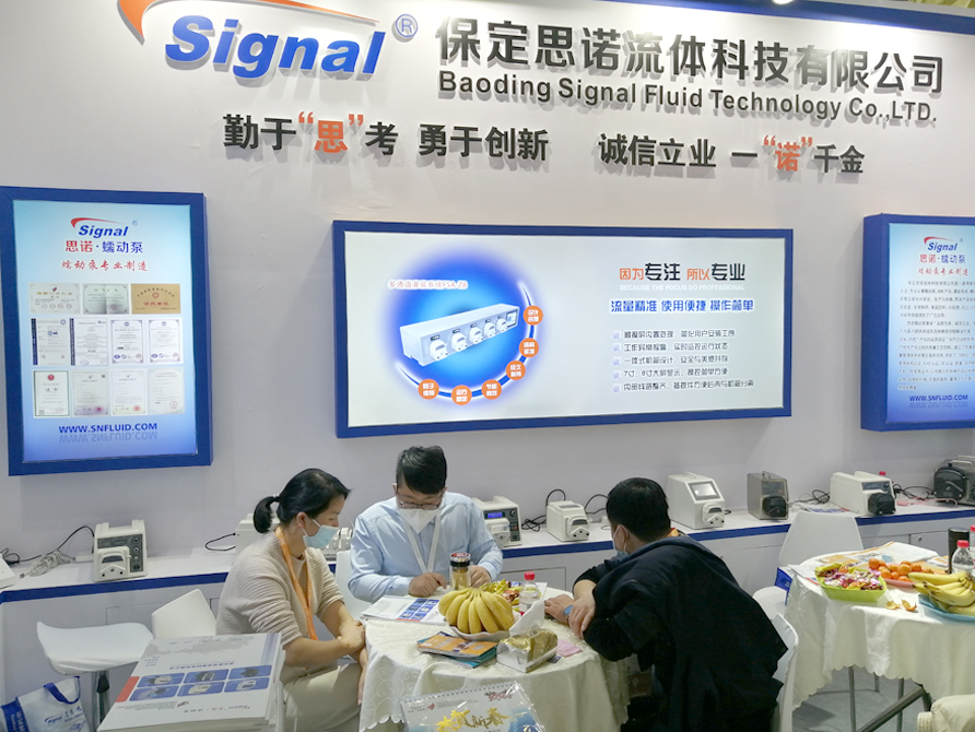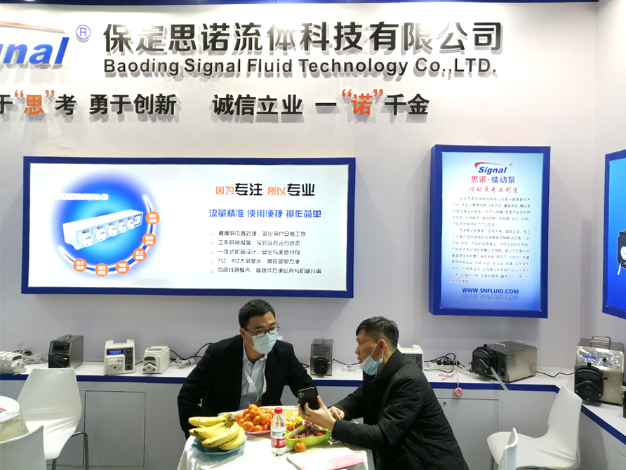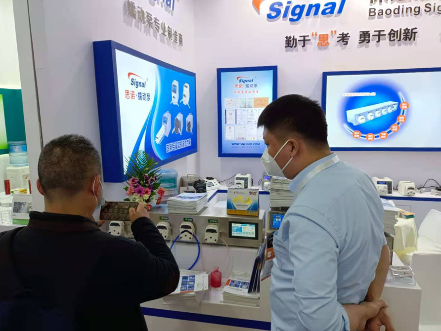 思諾流體展臺吸引了很多參展者的駐足,思諾的工作人員以飽滿的熱情、耐心地與參展者溝通產品特點和優勢。根據客戶需求現場演示展品的應用功能,客戶通過對產品的了解,對思諾蠕動泵產品有了更深的了解同時達成合作意向。