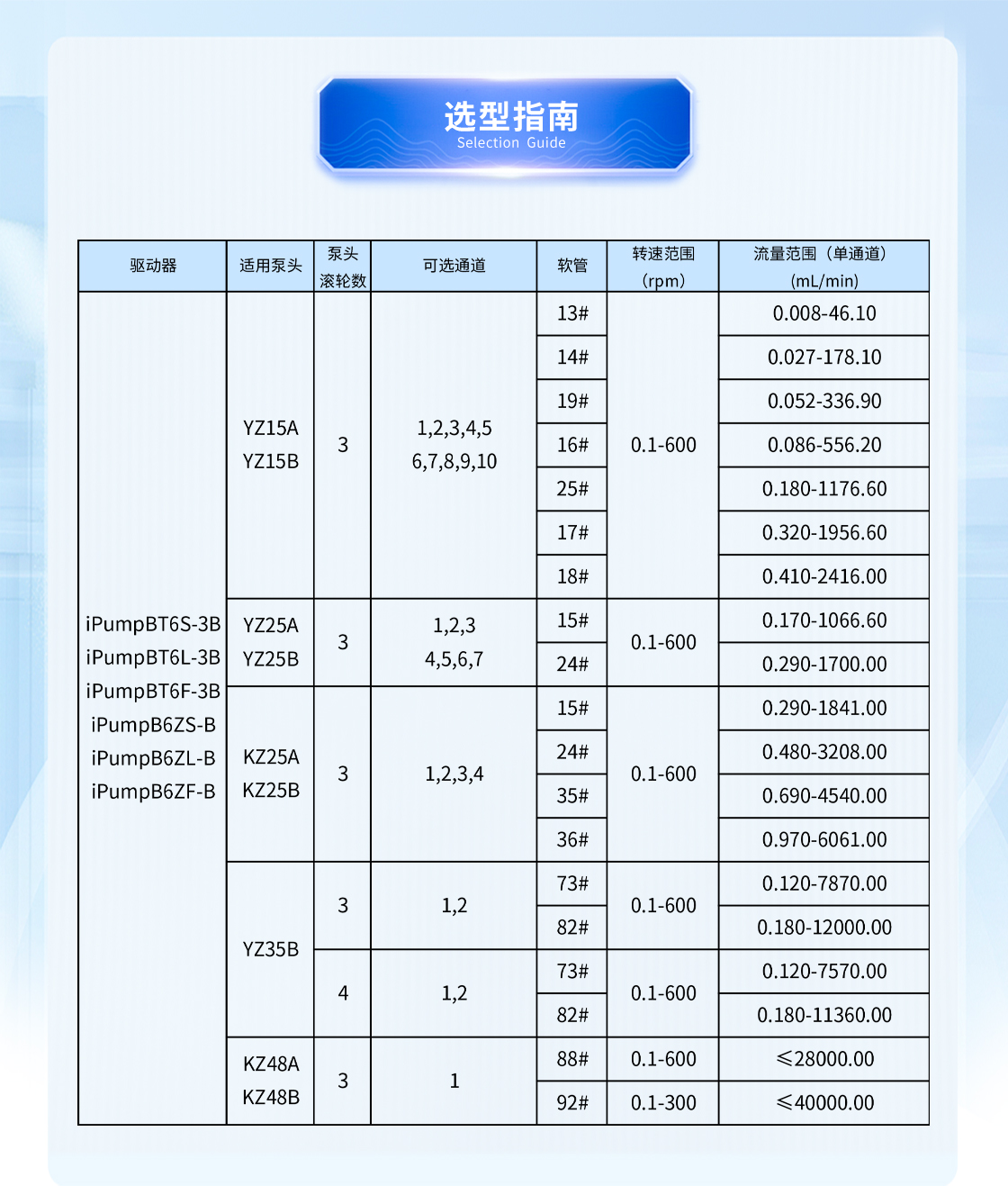 流量范圍:0.29-6061mL/min