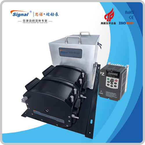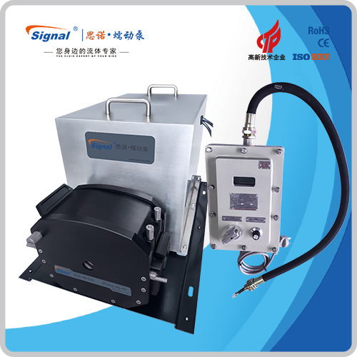 流量范圍:1.5-40L/min 彈性壓管結構,軟管壽命長,非常適合大流量液體傳輸 免維護交流減速電機驅動,變頻器調節轉速 全金屬泵頭,高精度,更可靠 防爆等級DIIBT4,適合易燃易爆環境使用